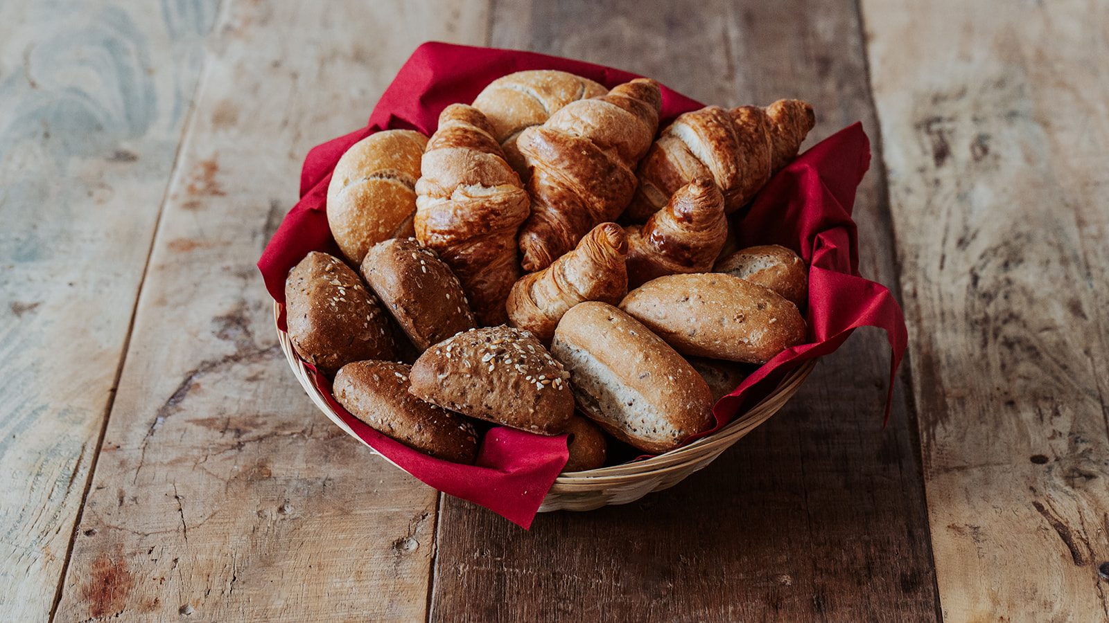 15 kleine sortierte helle und dunkle Brötchen und 5 kleine Croissants