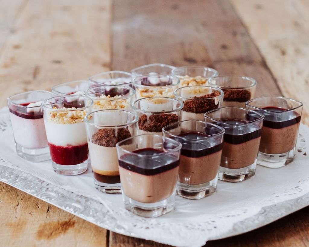 4 x Dunkle Schokoladen-Mousse mit Himbeerspiegel