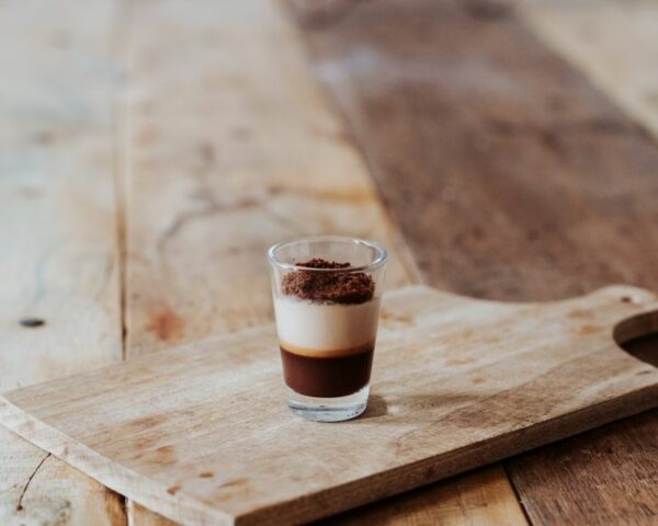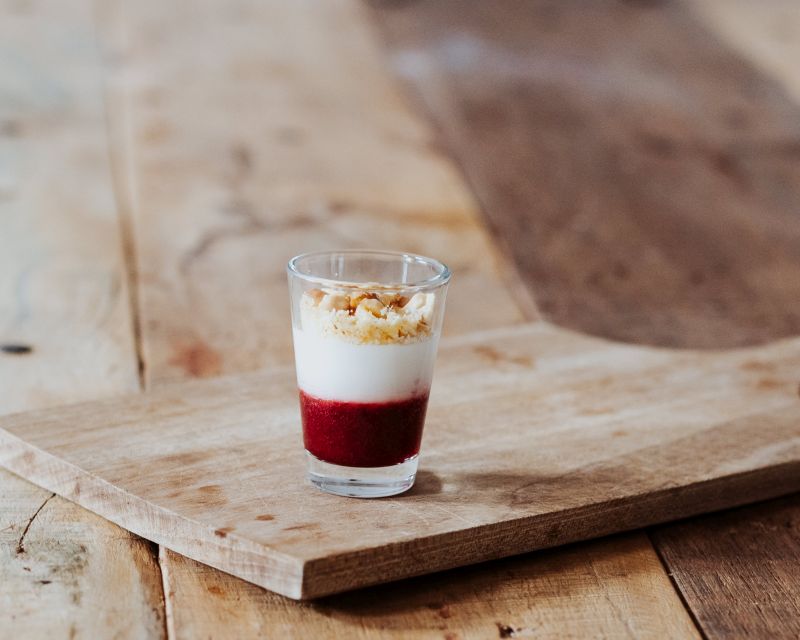4 x Joghurt-Mousse mit Belem-Pfeffer-Kirschen und Ingwer-Crumble
